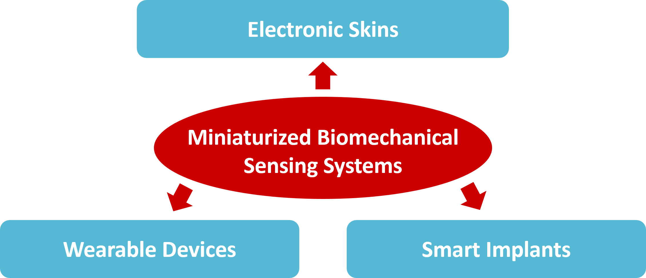 Bioelectronics offers a unique opportunity to seamlessly interface with biological systems, ranging from non-invasive wearables to deep-tissue implants. Our research focuses on the engineering of miniaturized biomechanical sensing platforms with advanced sensing capabilities. We deploy these systems as (1) electronic skins, (2) wearable devices, and (3) smart implants to decode fundamental biological mechanisms and accelerate the development of next-generation healthcare solutions.